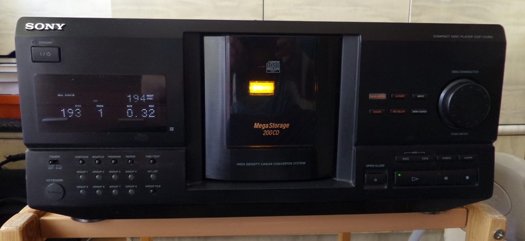 parduosiu SONY CDP-CX260 - tai CD keitiklis - grotuvas tiems kas tingi keitinėti kompaktus cd grotuve, labai gerai tinkantis kaip transportas tiems kas turi išorinį DAC nes SONY turi optikos išėjimą . Vieną kart sudėjus 200 kompaktų užteks metams klausymo